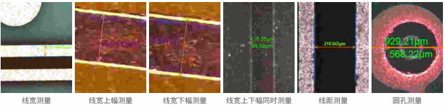 鏡頭使用3X以上的倍率進(jìn)行測量時(shí),線寬測量精度可達(dá)1μm,測量范圍在16-2600μm之間,滿足現(xiàn)代高密精細(xì)化線路板的線寬線距等測量需求。