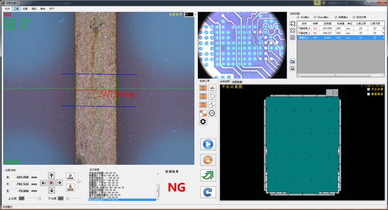 編程后量產(chǎn)測量速度快,平均測量≤3S/點(diǎn),快速測量“線寬/線距/線寬上下幅/圓/金手指線寬等”,分析標(biāo)準(zhǔn)公差值對比,從而智能判斷被測板上的測量值OK或NG。