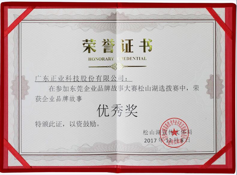 正業(yè)科技市場(chǎng)中心撰寫(xiě)的《風(fēng)雨同舟攜手廿載,匠心智造鑄就未來(lái)》,以正業(yè)科技20年歷程為藍(lán)本,講述正業(yè)科技自主創(chuàng)新走民族品牌之路的故事,榮獲“東莞企業(yè)品牌故事大賽”松山湖選拔賽優(yōu)秀獎(jiǎng)。