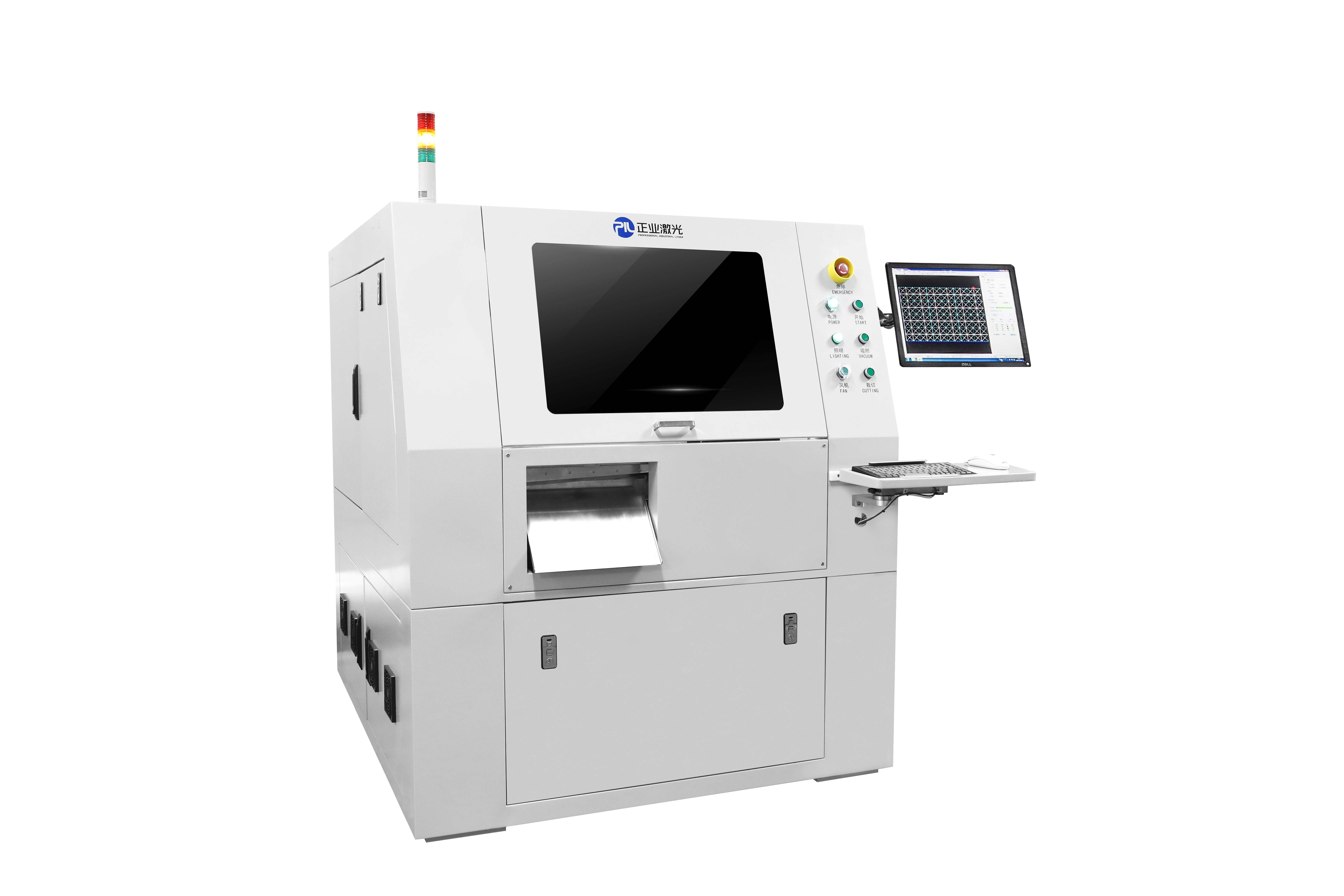 適用于覆蓋膜開窗把卷料覆蓋膜通過激光加工后裁切成單張只需把資料輸入電腦,全自動完成所有動作無需人工干預,可節(jié)省人力成本