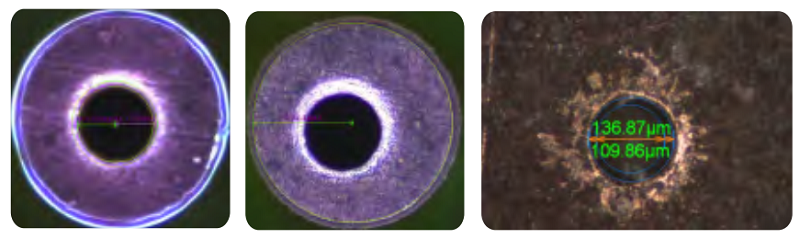在線檢孔機(jī)還可以實現(xiàn)少孔(漏鉆、塞孔)、多孔(多鉆,一分為二)、孔內(nèi)異物、孔大、孔小、“一”字型槽孔的長、寬、槽孔毛刺以及其它不規(guī)則異型孔缺陷等檢測。