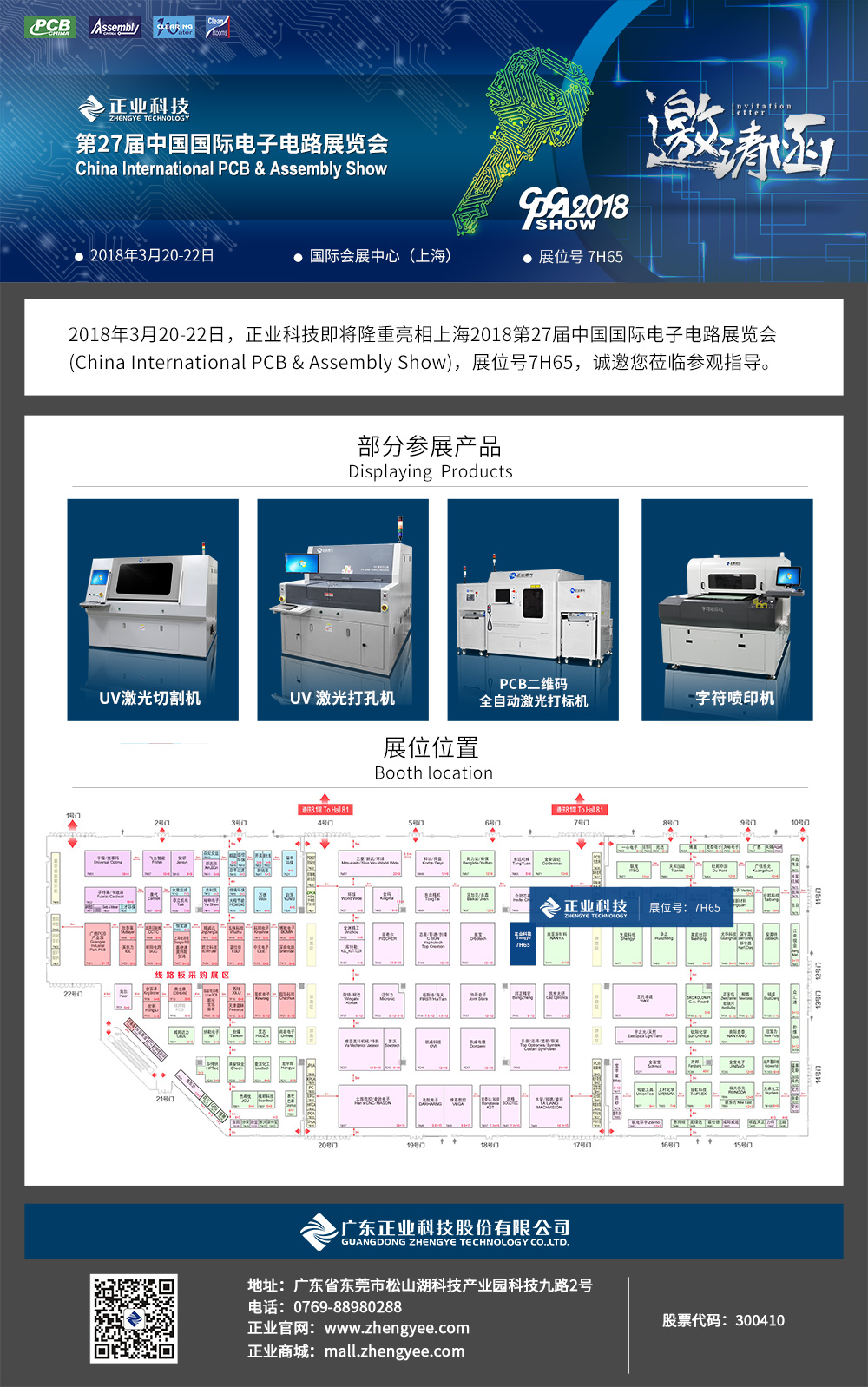 第27屆中國國際電子電路展覽會將于2018年3月20-22日在上海國際會展中心隆重開展,廣東正業(yè)科技股份有限公司(以下簡稱正業(yè)科技)將參加這次展會。